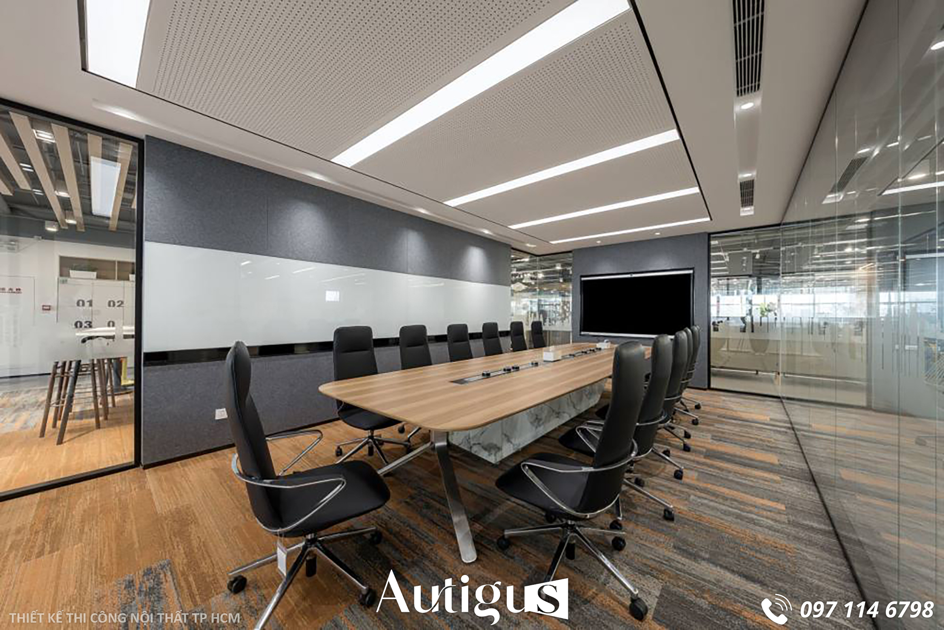 1) Thiết kế – thi công phòng họp: trang trọng, đủ tiêu chuẩn